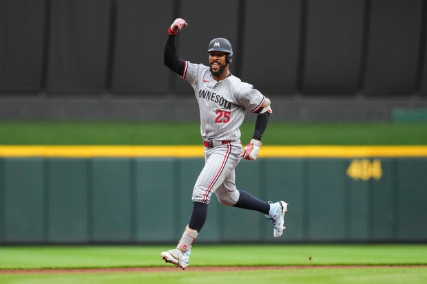 Earlier in the game, Buxton showcased his defensive skills by robbing Benson of a potential solo home run in the second inning, reaching over the center field wall. He then returned to the plate in the third and hit a solo homer just beyond Friedl's glove in nearly the same location.